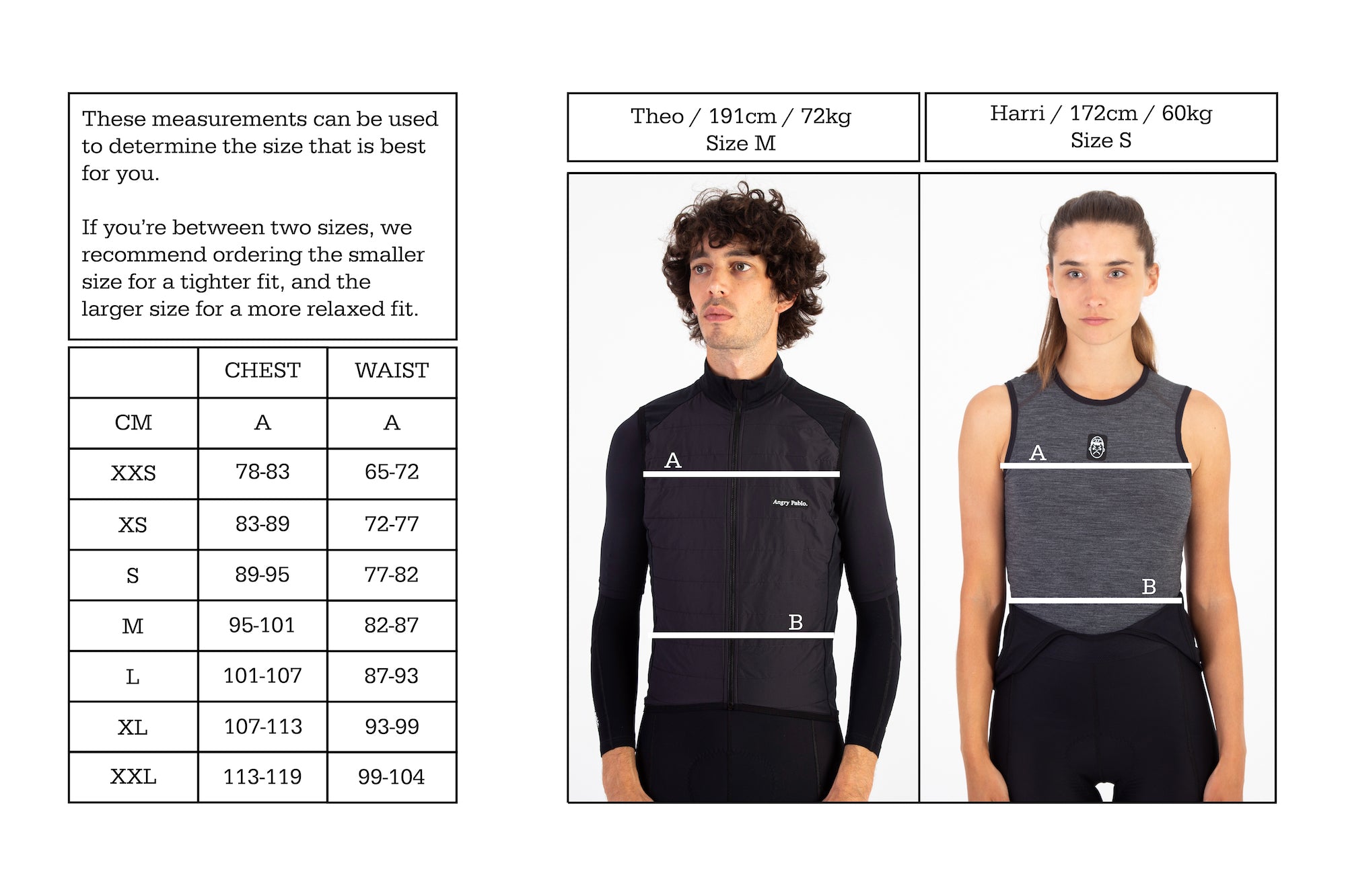 For more information, see size chart below.